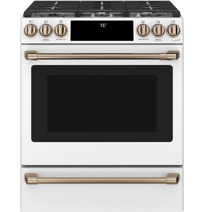 Café™ Matte White 30'' Slide-In Front Control Gas Oven with Convection Range and Air Fry (5.6 Cu.Ft) - CCGS700P4MW2