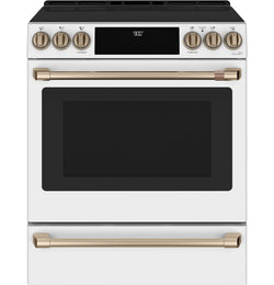 Café™ Matte White 30'' Slide-In Front Control Induction and Convection Range with Warming Drawer (5.7 Cu.Ft) - CCHS900P4MW2