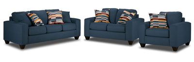 Cindy Sofa, Loveseat and Chair Set-Blue