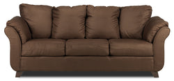 Soft Style. Comfort, versatility and easy care — it's all built right into the Collier living room set! Overstuffed cushions, no-sag springs and padded, flared arms offer an oasis of coziness for your family, while the durable, super-soft microfibre fabric stands up to daily wear and tear. The warm chocolate colour and casual look make this set a perfect fit for most any gathering room. Made in Canada.