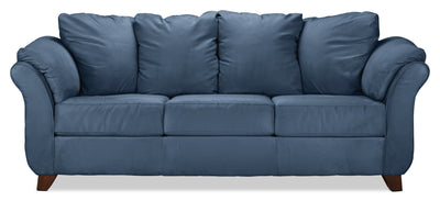 A Flair to Remember. With its distinctive profile, the Collier sofa will be at home in any well-designed room. The combination of flared arms and legs give this piece a unique silhouette, and the soothing cobalt blue microfibre is smooth and luxurious. Overstuffed cushions, padded arms and no-sag springs serve as a perfect path to comfort. Made in Canada.Product Dimensions: Depth: 37", Height: 39", Width: 89",