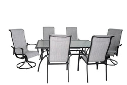 Hanlan 7-Piece 72" Outdoor Dining Set - Charcoal/Glass