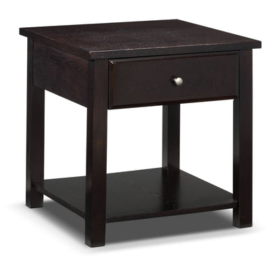Stylish Storage. The subtle flair and convenient drawers of the Ines end table combine rich form and function. Perfect for multi-tasking, this collection offers you space to store household items as well as surface area for work or dining. Bevelled edge drawer adds dimension, and a deep espresso finish throughout complements most any living room décor. Customer assembly is required.