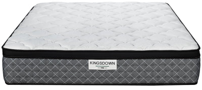 Confort matelassé. Le matelas très grand de la collection Caldwell semi-ferme de Kingsdown est votre billet d'entrée au pays des rêves, offrant l'équilibre parfait entre confort et soutien. Matelassé avec de la fibre de laine et hollo, ce matelas vous assure fraîcheur et confort tout au long de l'été, de l'hiver ou pour toute saison. Profitez d'un soulagement ultime de la pression et d'un soutien optimal de tout le corps grâce à la couche visco gel BluTekMC et aux ressorts ensachés avec bordure de mousse intégrée. Réveillez-vous en pleine forme et prêt à affronter la journée avec ce matelas de rêve.Dimensions du produit: Hauteur: 13", Longueur: 78", Largeur: 76",