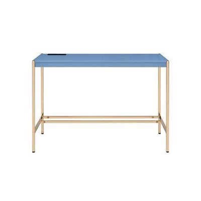 Why compromise on glamour for space when the Loher Writing Desk with USB - Navy Blue offers a streamlined compact and sophisticated solution for an office space in your home. This uncomplicated design pairs a sturdy tabletop with built in USB ports and outlets for a space that makes it easy to stay powered up for long hours of work. A chic gold coloured metal base adds additional personality for an accessible modern luxury that elevates the room!This item qualifies for FREE SHIPPING. Threshold Delivery included. Part or Full customer assembly may be required.