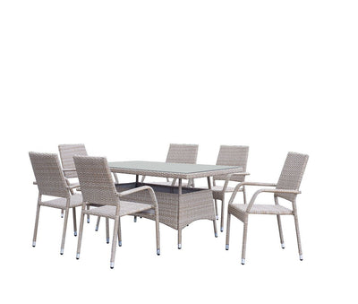 Nueces 7-Piece Stackable Outdoor Dining Package - Nature Tan Weave