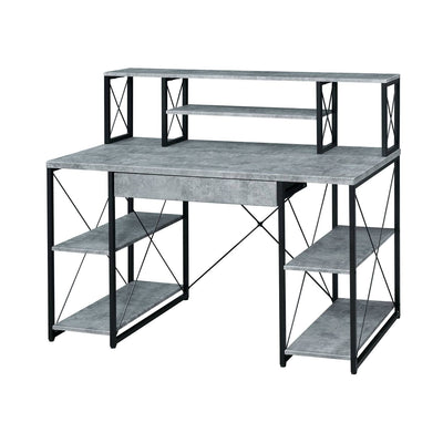 Specifically designed for all purpose, this Orville Office Desk - Faux Concrete is suitable for study room, bedroom, living room or home office. Expertly crafted with selected veneers, manufactured wood, and metal tubes this piece has open shelving, hutch and drawer to provide ample space to store office necessities and documents. Pair the Orville Office Desk - Faux Concrete with the Blingee Office Chair - Silver / Chrome to create the perfect modern office setting!