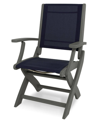 POLYWOOD® Coastal Folding Chair - Textured Silver/Slate Grey /Nay Blue