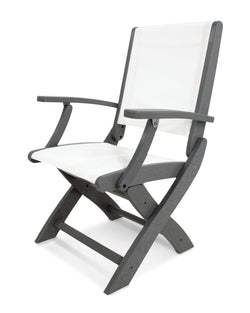 POLYWOOD® Coastal Folding Chair - Textured Silver/Slate Grey/White Sling