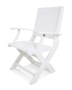 Enjoy the essence of carefree comfort, style and convenience with the POLYWOOD ® Coastal Folding Chair. The modern sling design and high-back comfort gives a relaxed feel to any outdoor entertaining space, and when you're ready to store this chairs, you'll love how it saves space, standing upright when folded. The frame is available in several attractive, fade-resistant colours and constructed of solid POLYWOOD ® recycled lumber that has the look of painted wood but doesn't require the maintenance associated with real wood. The durable sling fabric resists tears, fading, mildew and most weather conditions.