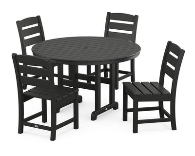 POLYWOOD® Lakeside 5-Piece Round Farmhouse Side Chair Dining Set - Black