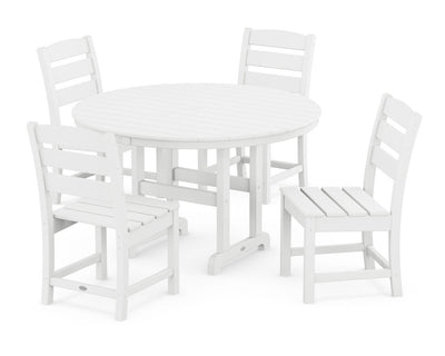 POLYWOOD® Lakeside 5-Piece Round Farmhouse Side Chair Dining Set - White