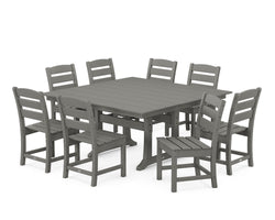 POLYWOOD® Lakeside 9-Piece Farmhouse Trestle Dining Set - Slate Grey