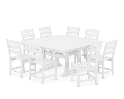 POLYWOOD® Lakeside 9-Piece Farmhouse Trestle Dining Set - White