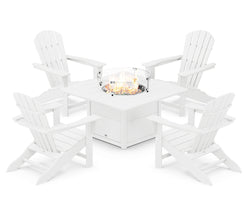 POLYWOOD® Palm Coast 5-Piece Adirondack Chair Conversation Set with Fire Pit Table - White