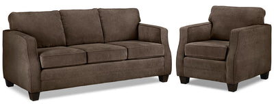 - The chic design is enhanced by sleek arms, welted accent piping and espresso-finished wood feet.