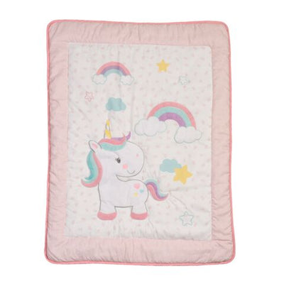 Feel that rainbow love with this Nursery Bedding Set. Featuring a gentle unicorn and rainbows print that’s fun to look at for your little one, this soft to the touch set makes it easy for them to snuggle up and snooze off, whether its bedtime, naptime or tummy-time. Give your little one a little adventure, right in their crib!