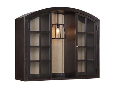 Looking for a versatile dining set that can adapt to your changing needs? Look no further than the Blackberry Farm dining set, which fuses the traditional simplicity and warmth of the farmhouse aesthetic with a modern sensibility. Store and display all your dining essentials with the hutch. Featuring a sleek black finish, this hutch offers ample storage space for your dishes, glasses, and other dining essentials. Showcase your fine china or other accessories through the hutch’s glass doors. The light fixture attached to the hutch provides a dim, atmospheric addition to your dining space. Whether that means you’re keeping things intimate or setting a relaxing ambience, you can control the vibe.Product Dimensions: Depth: 16.75", Height: 46.25", Width: 46.75",