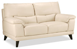 The Braylon loveseat brings plush comfort and ultra-contemporary style to your living room. A neutral bisque finish, designer stitching and rich, espresso-coloured legs make the perfect addition to most any décor. Overstuffed cushions and high-density seats combine for comfort that lets the worries of the day melt away.