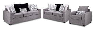 Brooklyn Sofa, Loveseat and Chair Set- Grey