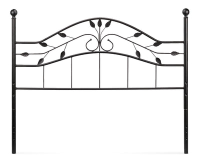 Copper Leaf. The dark-hued Calista Twin headboard uses a leaf motif paired with curved and straight metalwork to provide a rustic yet lithe centerpiece for your bedroom. Framed on both sides by thin posts with elegant bed knobs, the Calista boasts a curved branch-and-leaf band with curled accents that lend your home a sense of natural design with the strength of metal and richness of copper.Product Dimensions: Height: 49", Width: 41",