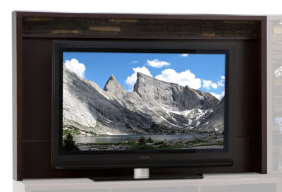 Sure Bet. Enjoy the instant appeal and homey feeling of the Gamble hutch. It provides the perfect spot to display and enjoy your flat-screen television. A faux stone layered facade adds rustic charm, and a bordeaux finish enhances the gorgeous design. Made in Canada.Product Dimensions: Depth: 7", Height: 42", Width: 68",