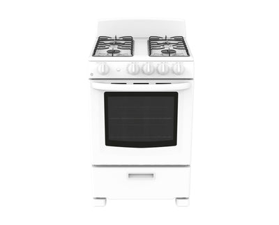 A Simple Range and Stove.Preparing your favourite meal just got easier with this GE 24” Freestanding Gas Range. This range and oven offers 2.9 cu. ft. of space to bake dishes of all shapes and sizes. The range has four sealed burners that limit food and grime from building up on the sub top. This white gas stove features a removable back guard to help you achieve a traditional or sleek look. The GE 24" White Gas Range and Stove make great use of space with the separate broiler drawer. This is a great compact range and stove for small kitchens, condos, and apartments. A durable option for families or units with communal kitchens, the scratch-resistant porcelain oven door will last for years and maintain its clean white finish. The large oven window and light allow you to peek into the oven without releasing heat by opening the door. This product comes with a one-year warranty on the entire appliance including parts and labour. This product is available for home delivery or in-store pickup.