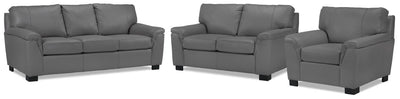 Reynolds Leather Sofa, Loveseat and Chair Set - Grey
