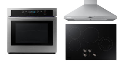 Samsung 5000 Series Stainless Steel Kitchen Package with Wall Oven, Electric Cooktop, and Hood Fan
