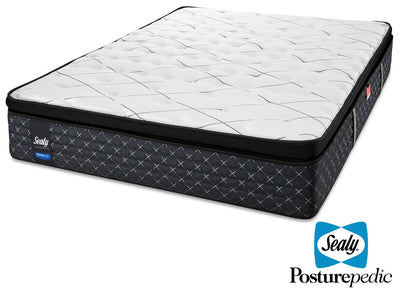 Zonk out each night on the Sealy Posturepedic Pathos plush King mattress. Spread out on every inch of this cozy mattress designed with the SolidEdge 2 system that maximizes the usable sleep surface. SealyAir fibre releases any body heat that's been absorbed by the fabric and foam for a cool, comfortable night's rest. In addition to the superior support of the Posturepedic Platinum technology, this mattress features one inch of gel memory foam to gently cradle you as you doze off. Made in Canada.Product Dimensions: Height: 9", Length: 78", Width: 76",