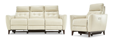 Wexner Dual Power Reclining Leather Sofa and Chair Set - Colby Stone
